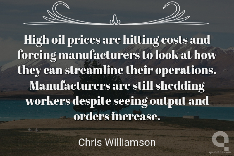 High oil prices are hitting costs and forcing manufacturers to look at how they can streamline their operations. Manufacturers are still shedding workers despite seeing output and orders increase.