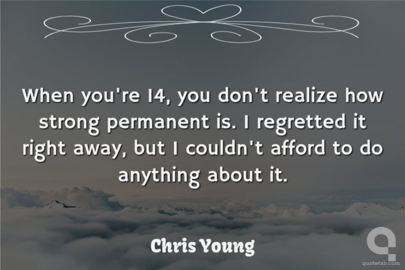 When you're 14, you don't realize how strong permanent is. I regretted it right away, but I couldn't afford to do anything about it.