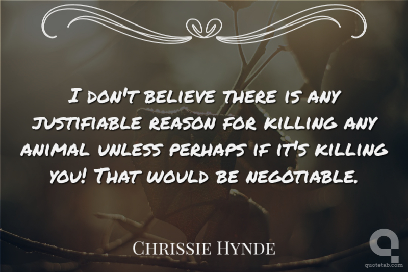 I don't believe there is any justifiable reason for killing any animal unless perhaps if it's killing you! That would be negotiable.