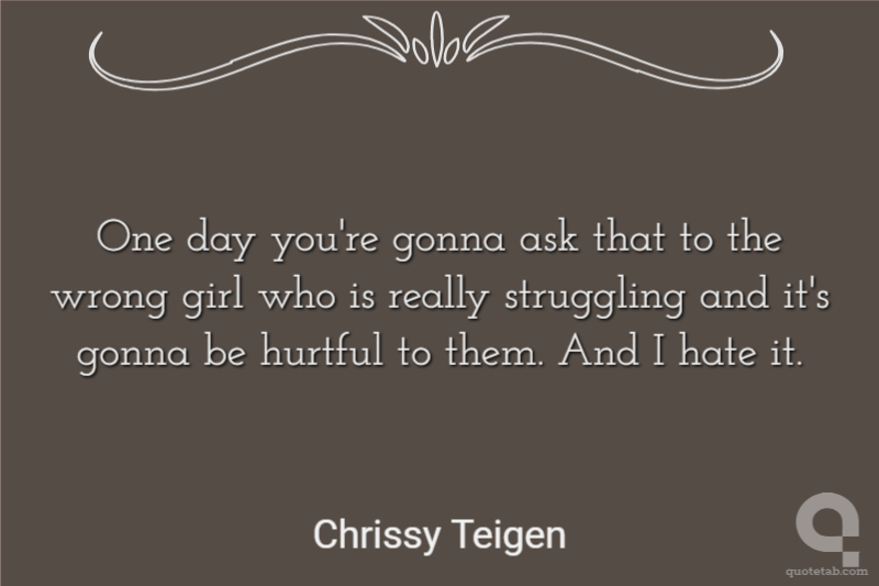 One day you're gonna ask that to the wrong girl who is really struggling and it's gonna be hurtful to them. And I hate it.