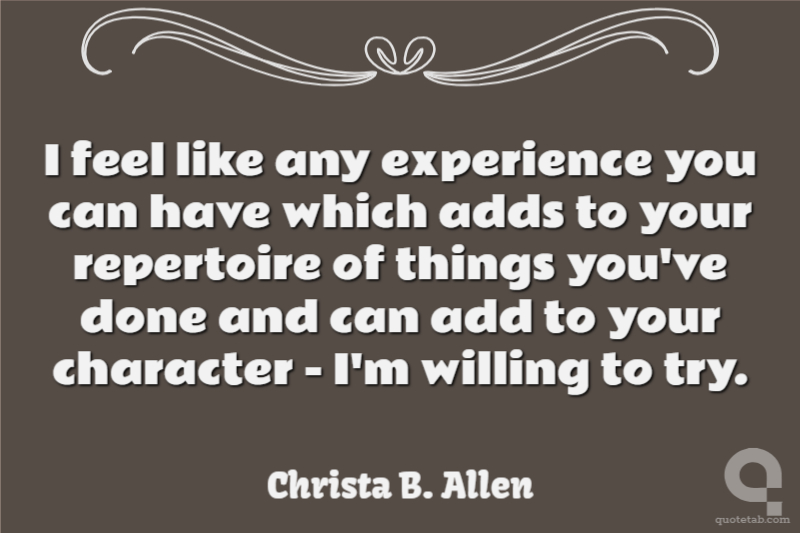 I feel like any experience you can have which adds to your repertoire of things you've done and can add to your character - I'm willing to try.