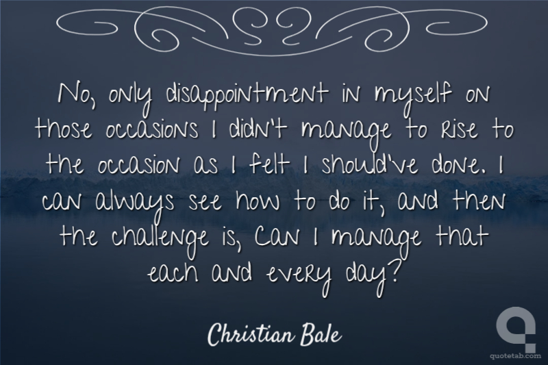 No, only disappointment in myself on those occasions I didn't manage to rise to the occasion as I felt I should've done. I can always see how to do it, and then the challenge is, Can I manage that each and every day?
