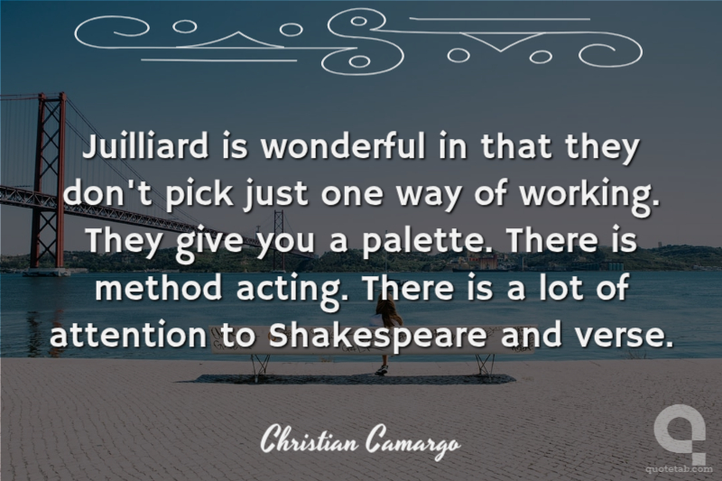 Juilliard is wonderful in that they don't pick just one way of working. They give you a palette. There is method acting. There is a lot of attention to Shakespeare and verse.