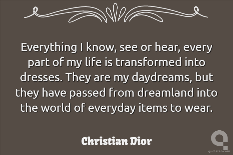 Everything I know, see or hear, every part of my life is transformed into dresses. They are my daydreams, but they have passed from dreamland into the world of everyday items to wear.