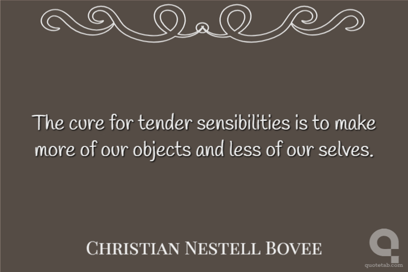 The cure for tender sensibilities is to make more of our objects and less of our selves.