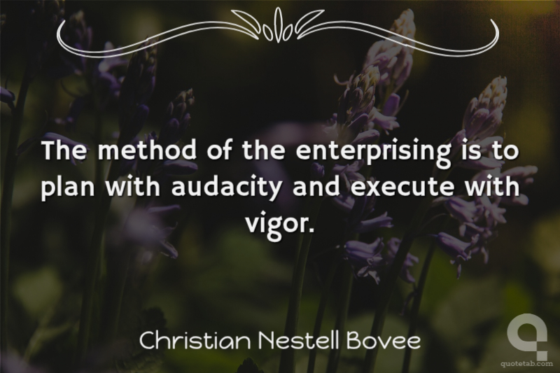 The method of the enterprising is to plan with audacity and execute with vigor.