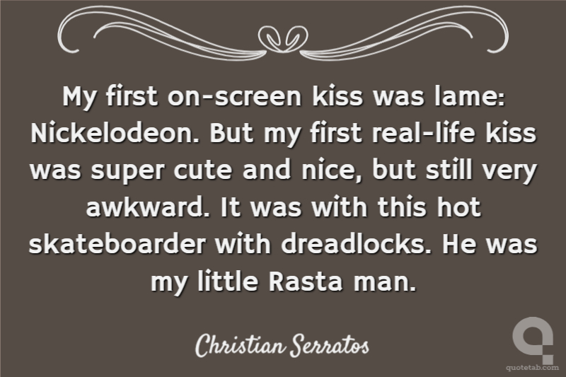My first on-screen kiss was lame: Nickelodeon. But my first real-life kiss was super cute and nice, but still very awkward. It was with this hot skateboarder with dreadlocks. He was my little Rasta man.