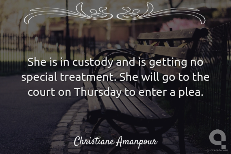 She is in custody and is getting no special treatment. She will go to the court on Thursday to enter a plea.