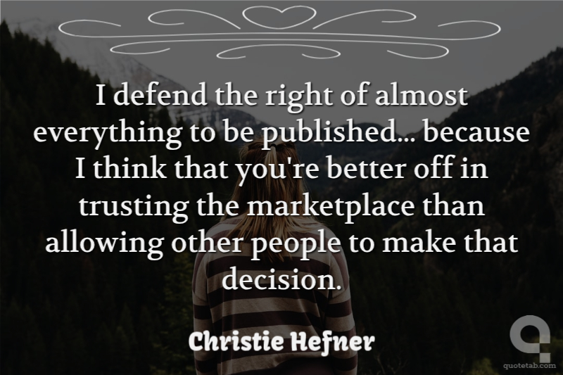 I defend the right of almost everything to be published... because I think that you're better off in trusting the marketplace than allowing other people to make that decision.