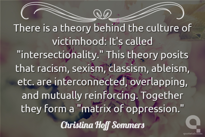 There is a theory behind the culture of victimhood: It's called "intersectionality." This theory posits that racism, sexism, classism, ableism, etc. are interconnected, overlapping, and mutually reinforcing. Together they form a "matrix of oppression."