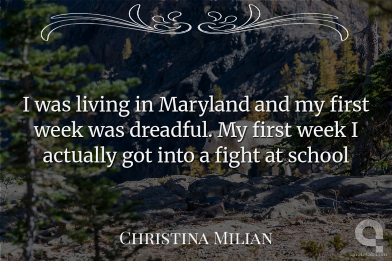 I was living in Maryland and my first week was dreadful. My first week I actually got into a fight at school