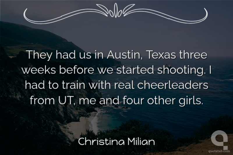 They had us in Austin, Texas three weeks before we started shooting. I had to train with real cheerleaders from UT, me and four other girls.