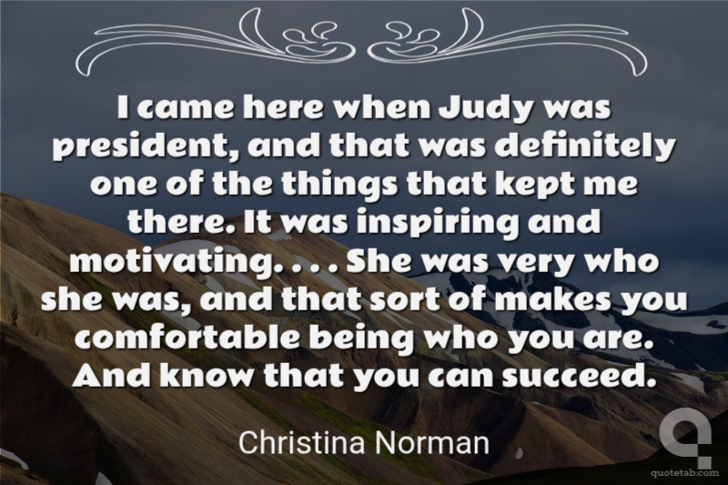 I came here when Judy was president, and that was definitely one of the things that kept me there. It was inspiring and motivating. . . . She was very who she was, and that sort of makes you comfortable being who you are. And know that you can succeed.