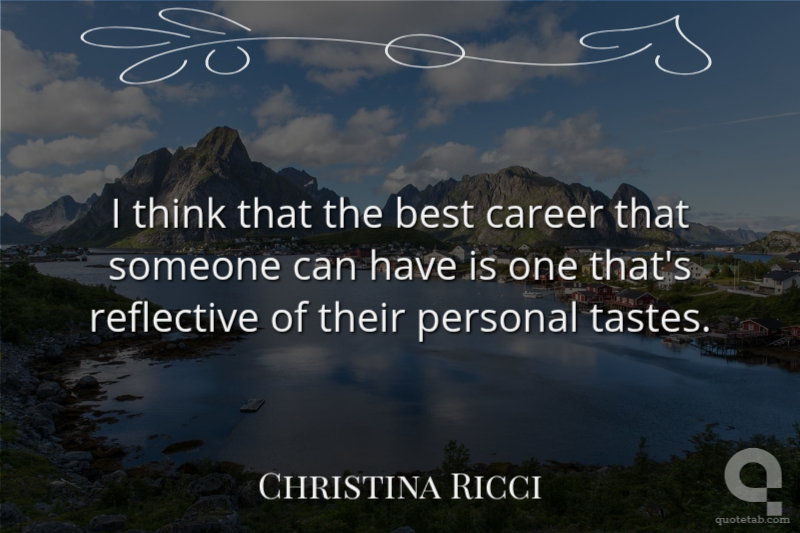 I think that the best career that someone can have is one that's reflective of their personal tastes.