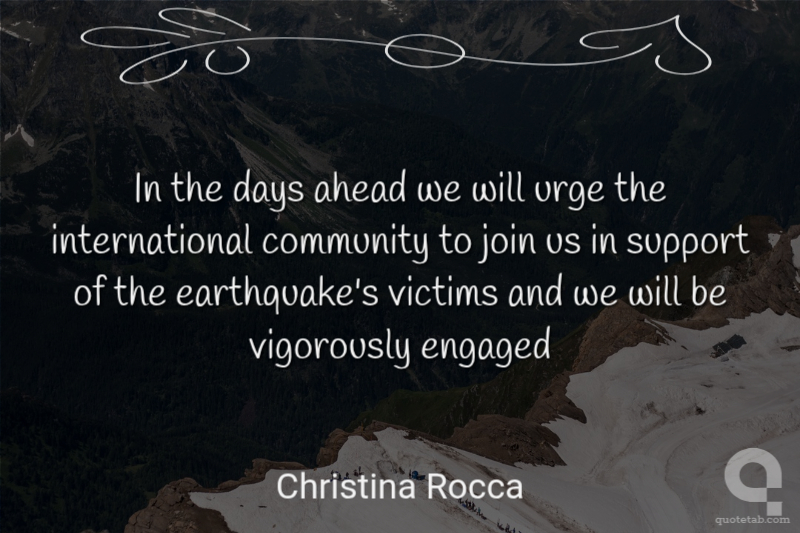 In the days ahead we will urge the international community to join us in support of the earthquake's victims and we will be vigorously engaged
