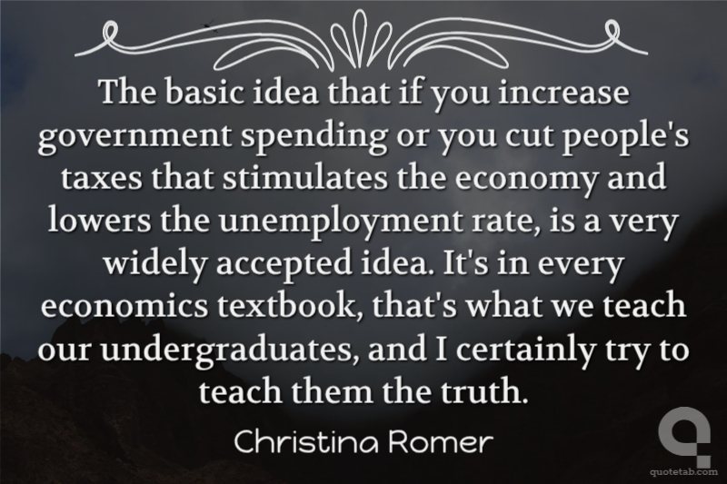 The basic idea that if you increase government spending or you cut people's taxes that stimulates the economy and lowers the unemployment rate, is a very widely accepted idea. It's in every economics textbook, that's what we teach our undergraduates, and I certainly try to teach them the truth.
