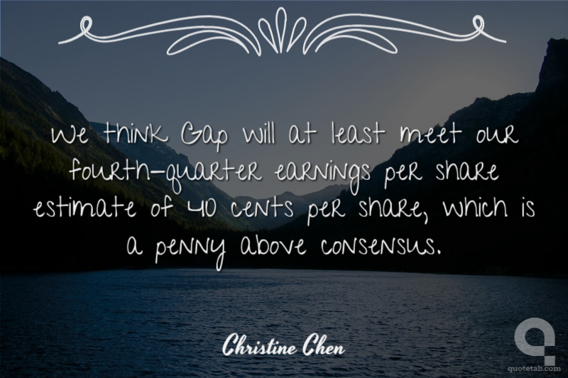 We think Gap will at least meet our fourth-quarter earnings per share estimate of 40 cents per share, which is a penny above consensus.