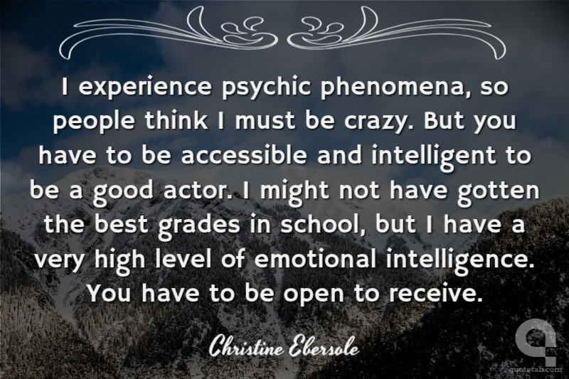 I experience psychic phenomena, so people think I must be crazy. But you have to be accessible and intelligent to be a good actor. I might not have gotten the best grades in school, but I have a very high level of emotional intelligence. You have to be open to receive.