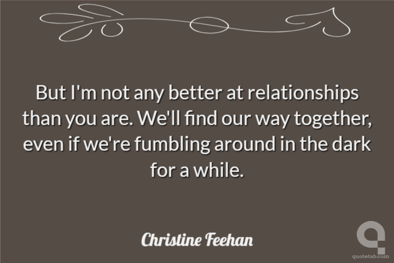 But I'm not any better at relationships than you are. We'll find our way together, even if we're fumbling around in the dark for a while.