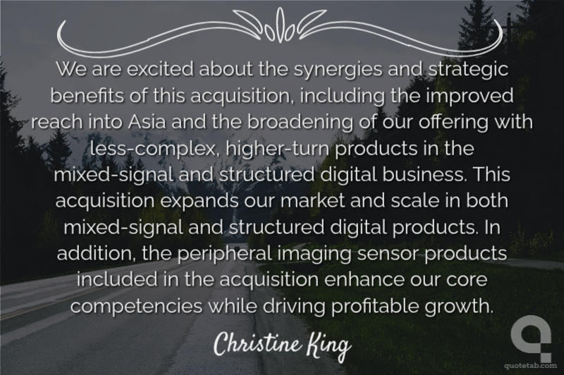 We are excited about the synergies and strategic benefits of this acquisition, including the improved reach into Asia and the broadening of our offering with less-complex, higher-turn products in the mixed-signal and structured digital business. This acquisition expands our market and scale in both mixed-signal and structured digital products. In addition, the peripheral imaging sensor products included in the acquisition enhance our core competencies while driving profitable growth.