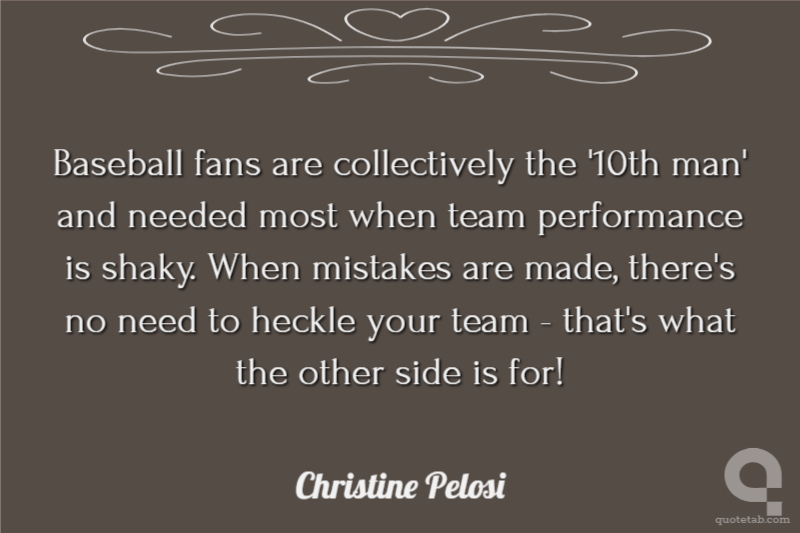 Baseball fans are collectively the '10th man' and needed most when team performance is shaky. When mistakes are made, there's no need to heckle your team - that's what the other side is for!