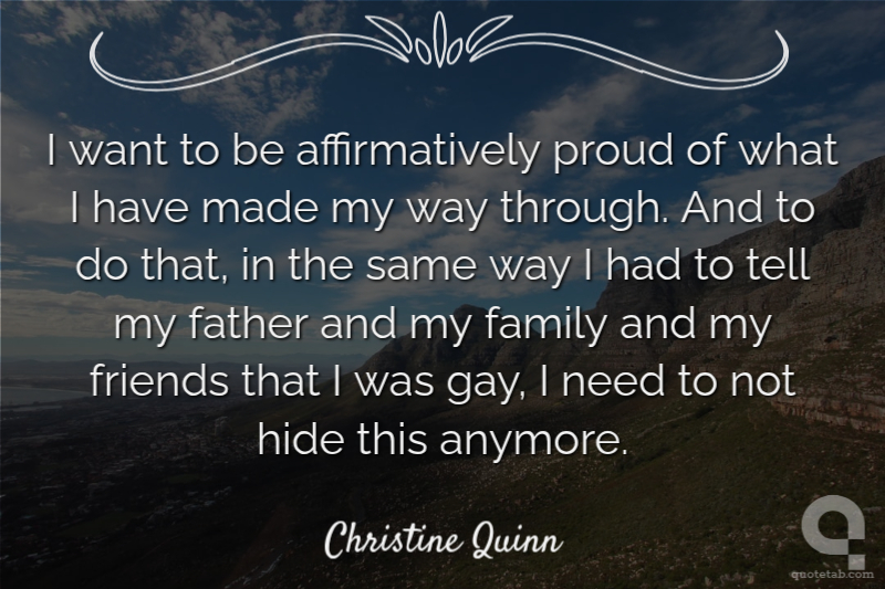 I want to be affirmatively proud of what I have made my way through. And to do that, in the same way I had to tell my father and my family and my friends that I was gay, I need to not hide this anymore.