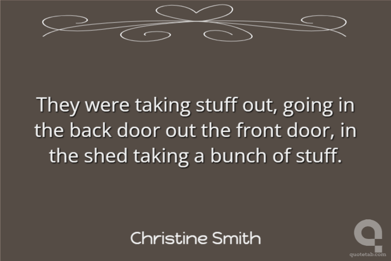 They were taking stuff out, going in the back door out the front door, in the shed taking a bunch of stuff.