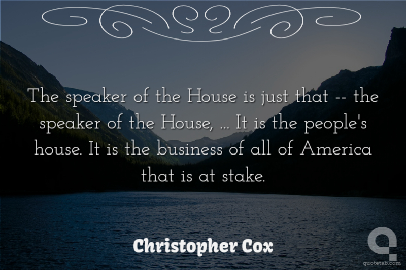The speaker of the House is just that -- the speaker of the House, ... It is the people's house. It is the business of all of America that is at stake.
