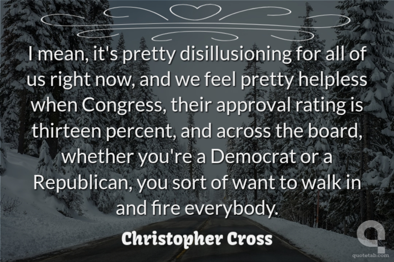 I mean, it's pretty disillusioning for all of us right now, and we feel pretty helpless when Congress, their approval rating is thirteen percent, and across the board, whether you're a Democrat or a Republican, you sort of want to walk in and fire everybody.
