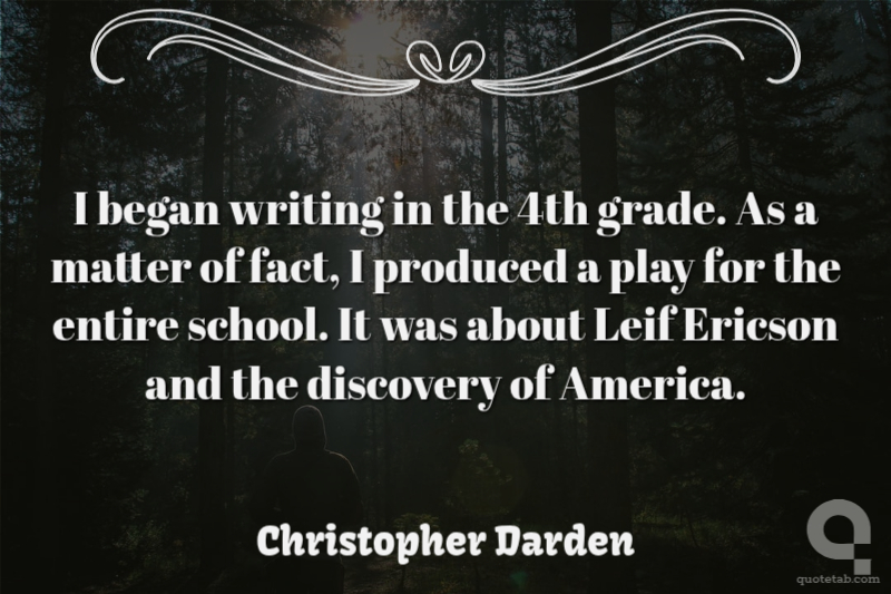 I began writing in the 4th grade. As a matter of fact, I produced a play for the entire school. It was about Leif Ericson and the discovery of America.