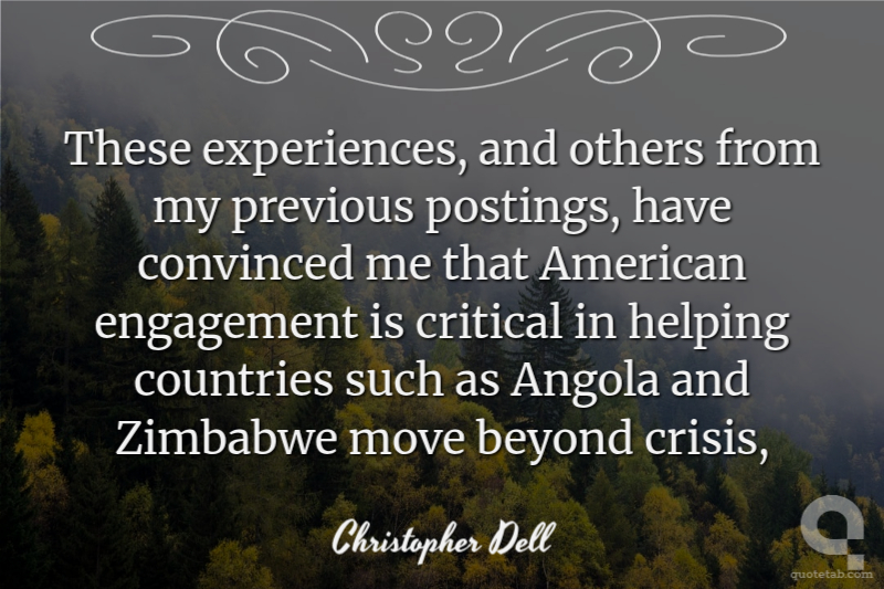 These experiences, and others from my previous postings, have convinced me that American engagement is critical in helping countries such as Angola and Zimbabwe move beyond crisis,