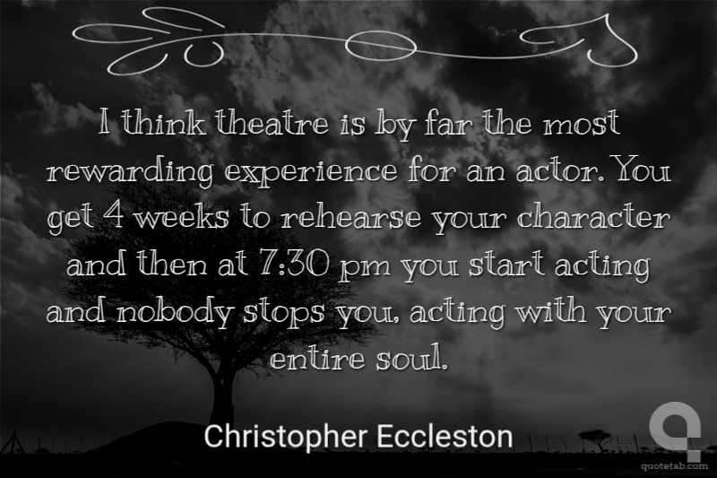 I think theatre is by far the most rewarding experience for an actor. You get 4 weeks to rehearse your character and then at 7:30 pm you start acting and nobody stops you, acting with your entire soul.