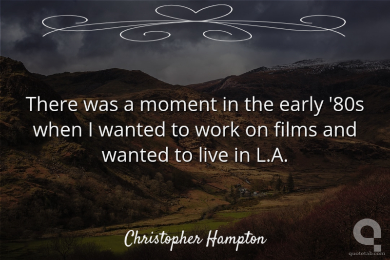 There was a moment in the early '80s when I wanted to work on films and wanted to live in L.A.