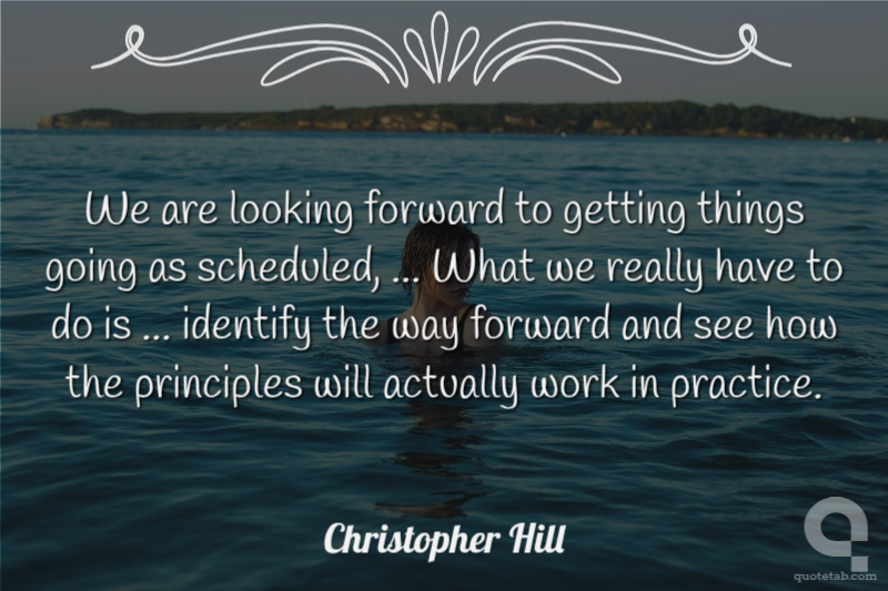 We are looking forward to getting things going as scheduled, ... What we really have to do is ... identify the way forward and see how the principles will actually work in practice.