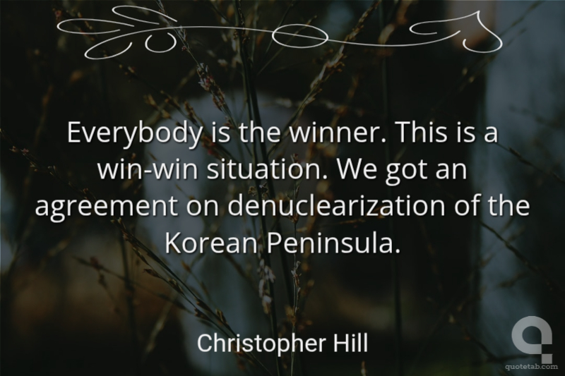 Everybody is the winner. This is a win-win situation. We got an agreement on denuclearization of the Korean Peninsula.