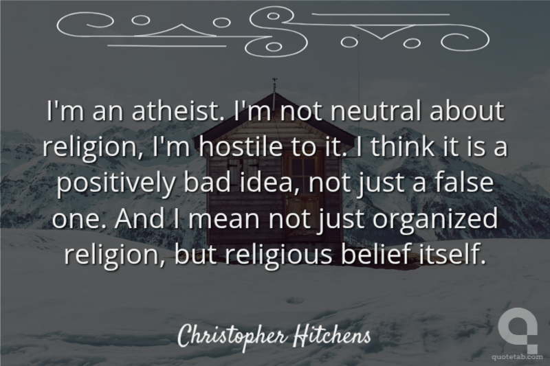 I'm an atheist. I'm not neutral about religion, I'm hostile to it. I think it is a positively bad idea, not just a false one. And I mean not just organized religion, but religious belief itself.