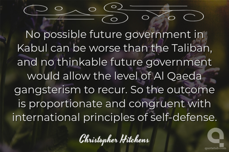 No possible future government in Kabul can be worse than the Taliban, and no thinkable future government would allow the level of Al Qaeda gangsterism to recur. So the outcome is proportionate and congruent with international principles of self-defense.