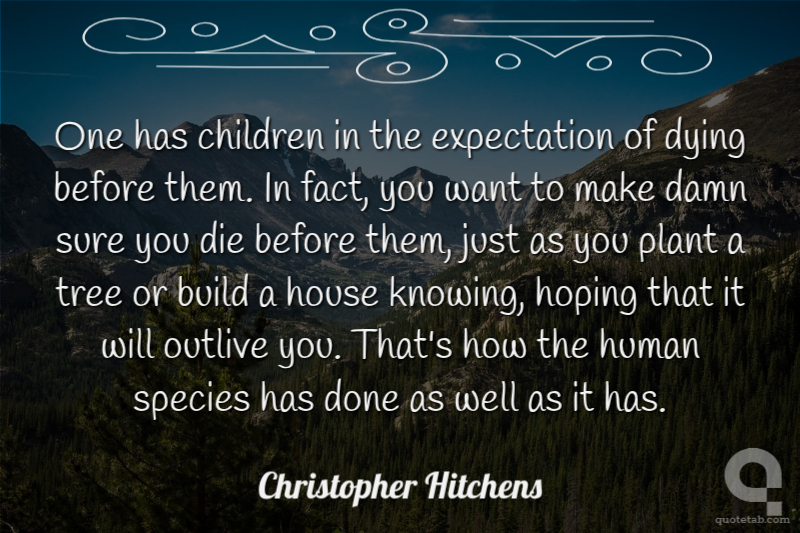 One has children in the expectation of dying before them. In fact, you want to make damn sure you die before them, just as you plant a tree or build a house knowing, hoping that it will outlive you. That's how the human species has done as well as it has.