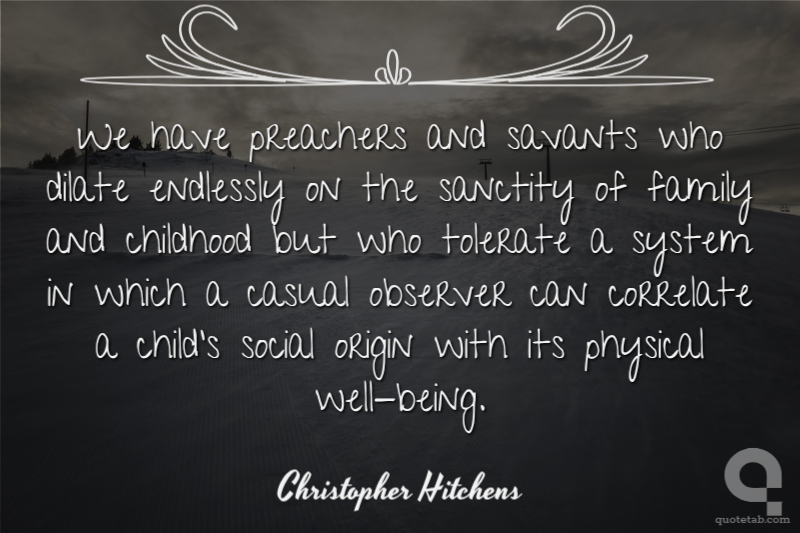 We have preachers and savants who dilate endlessly on the sanctity of family and childhood but who tolerate a system in which a casual observer can correlate a child's social origin with its physical well-being.