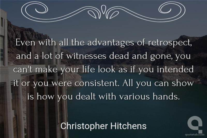 Even with all the advantages of retrospect, and a lot of witnesses dead and gone, you can't make your life look as if you intended it or you were consistent. All you can show is how you dealt with various hands.