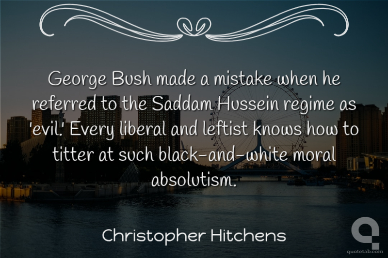 George Bush made a mistake when he referred to the Saddam Hussein regime as 'evil.' Every liberal and leftist knows how to titter at such black-and-white moral absolutism.
