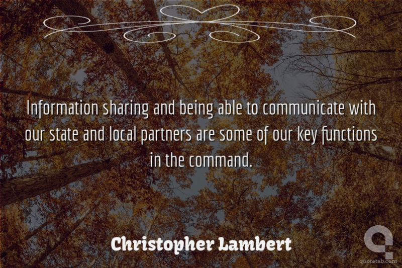 Information sharing and being able to communicate with our state and local partners are some of our key functions in the command.
