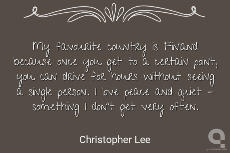 My favourite country is Finland because once you get to a certain point, you can drive for hours without seeing a single person. I love peace and quiet - something I don't get very often.
