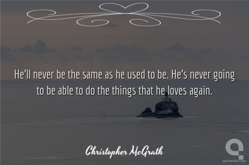 He'll never be the same as he used to be. He's never going to be able to do the things that he loves again.