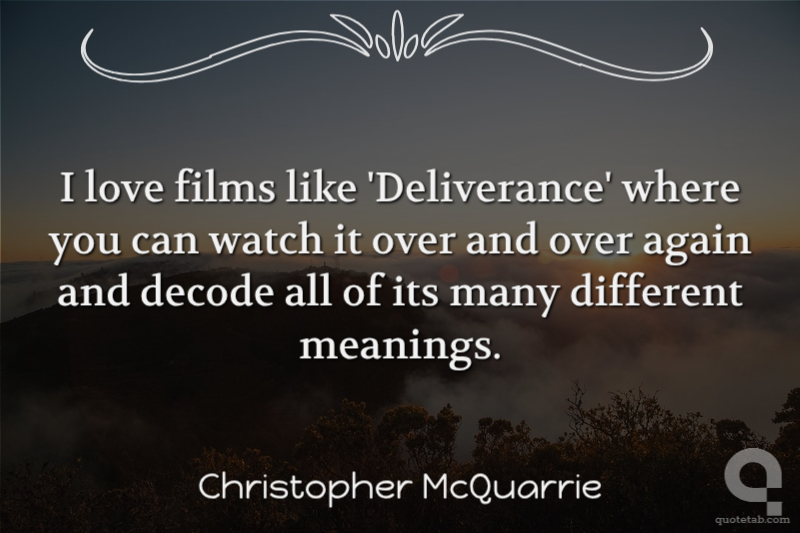 I love films like 'Deliverance' where you can watch it over and over again and decode all of its many different meanings.