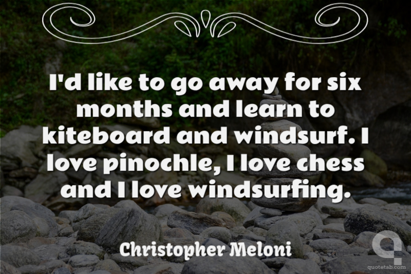 I'd like to go away for six months and learn to kiteboard and windsurf. I love pinochle, I love chess and I love windsurfing.