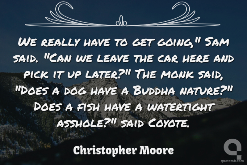 We really have to get going," Sam said. "Can we leave the car here and pick it up later?" The monk said, "Does a dog have a Buddha nature?" Does a fish have a watertight asshole?" said Coyote.