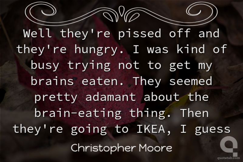 Well they're pissed off and they're hungry. I was kind of busy trying not to get my brains eaten. They seemed pretty adamant about the brain-eating thing. Then they're going to IKEA, I guess