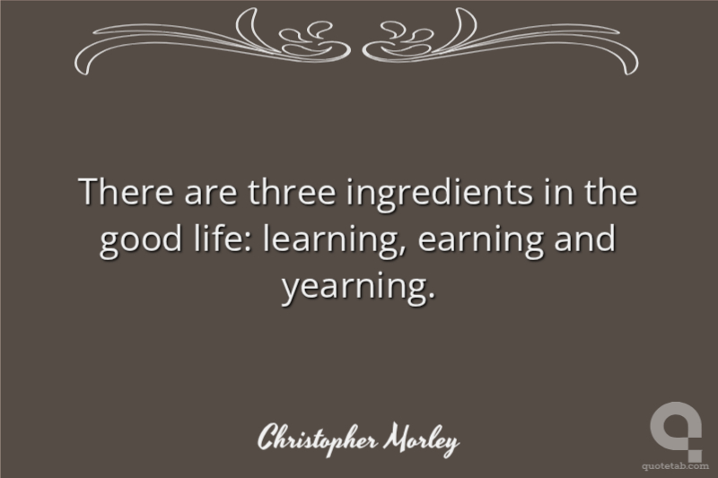There are three ingredients in the good life: learning, earning and yearning.
