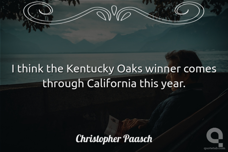I'm very nervous. Balance is an outstanding horse. I think she'll be the one to beat. Balance is making the biggest step forward.
